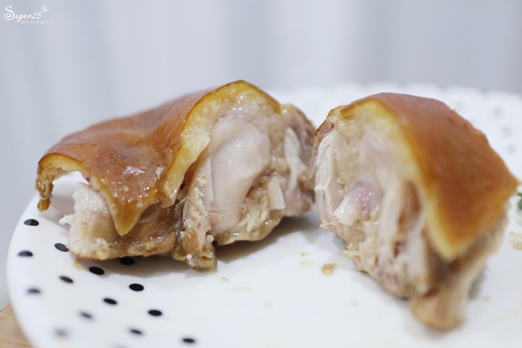 呈現出很獨特的煙燻,從外觀看燻出一身焦糖色,吃起來皮薄肉質彈嫩有咬勁,煙燻風味很迷人