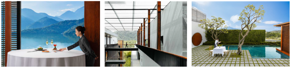 涵碧樓的建築完美融入當地自然景觀,是獨特的前進式的建築,並融入在地風土的氛圍,成為獨一無二的涵碧
