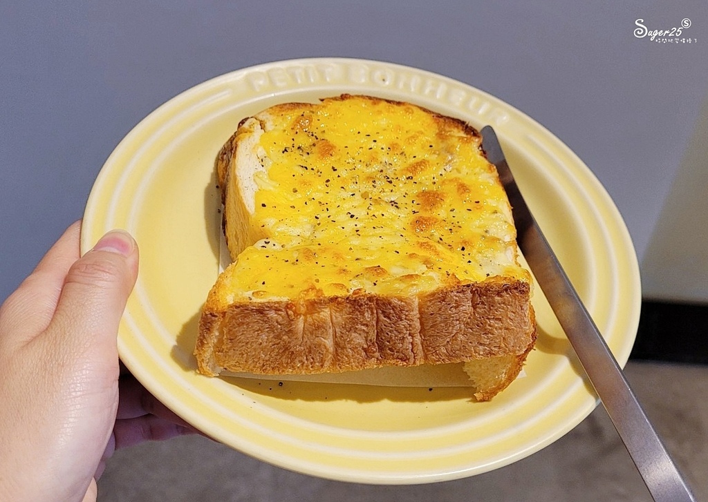 就是將可頌放入鬆餅機壓扁,口感更有層次,吃起來口感極佳,不膩口好好吃