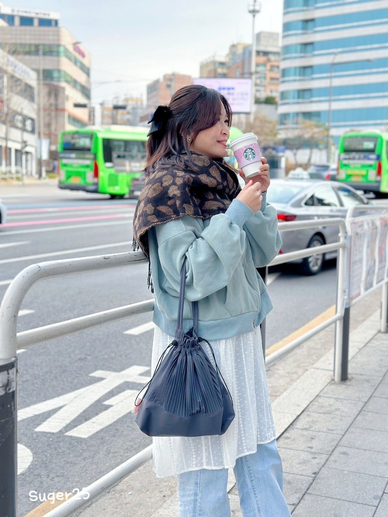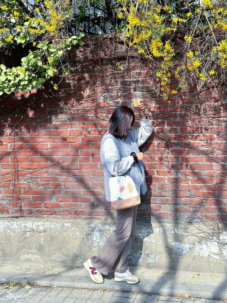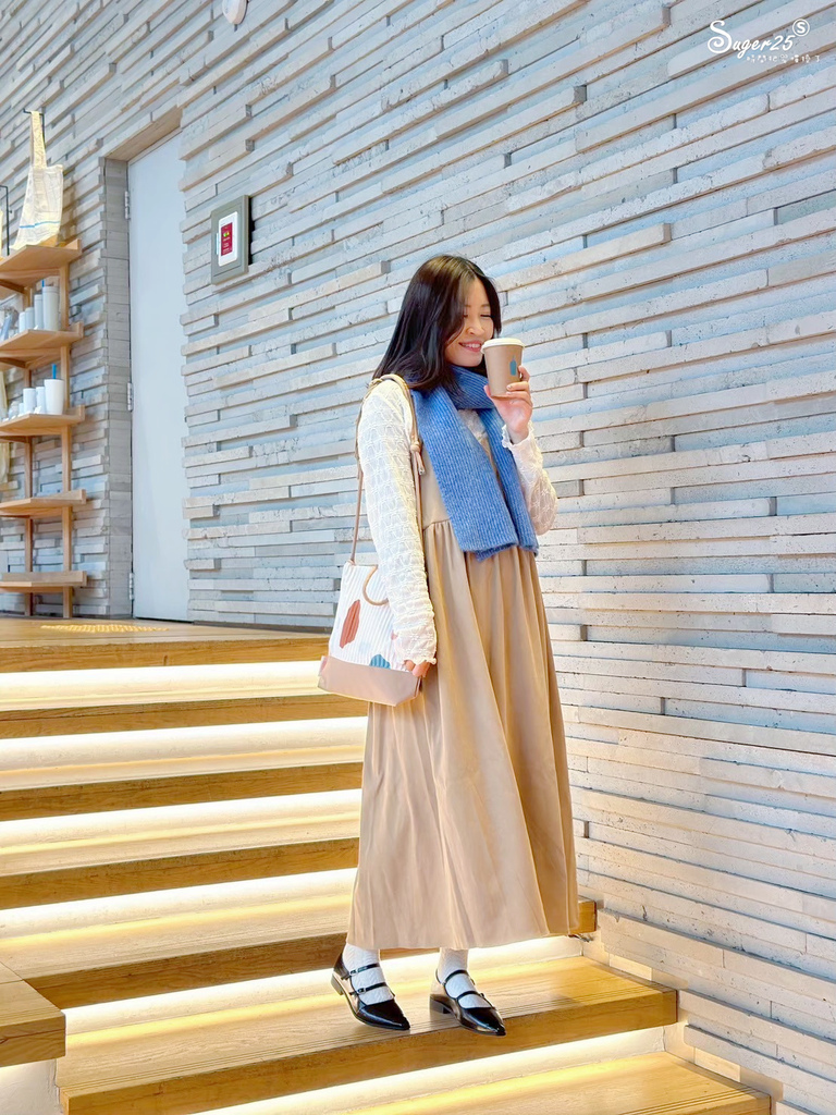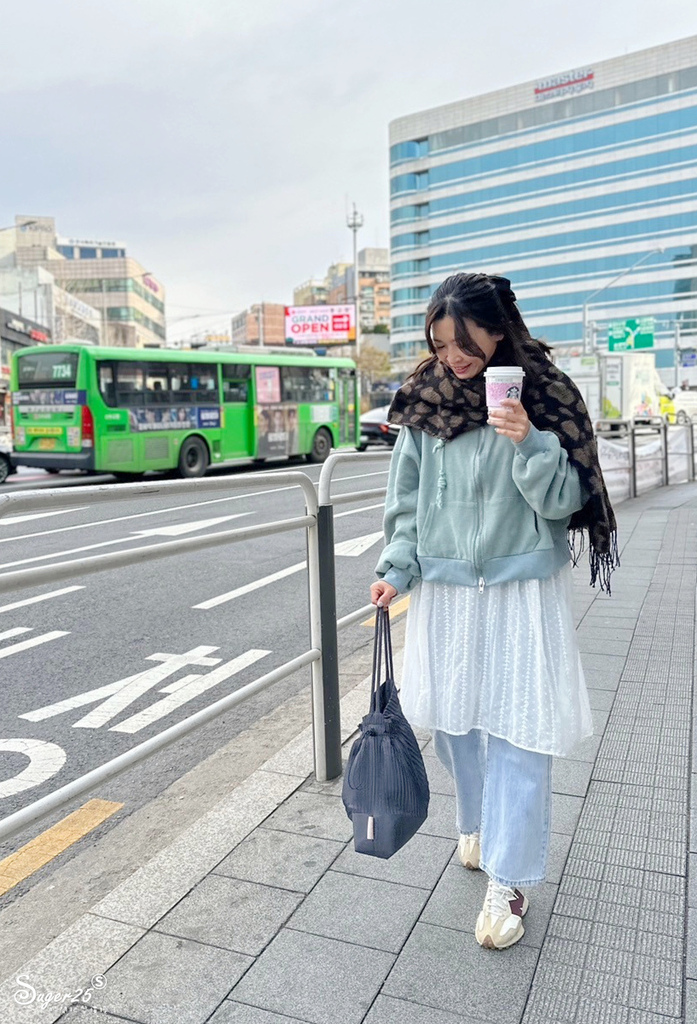 韓國室內都會開暖氣,室內外溫差很大,脫下外套裡面就不用穿太多件,簡單的洋蔥式穿搭