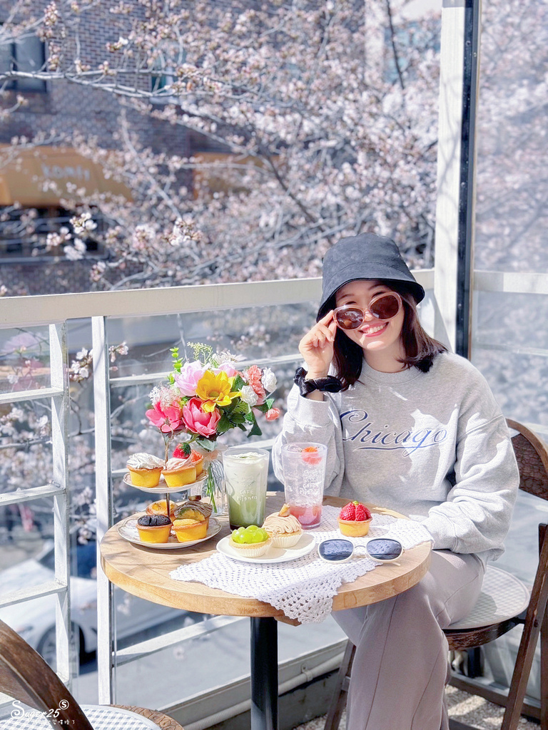 首爾賞櫻咖啡廳 Cafe Mignon 카페미뇽 합정점 - 賞櫻必去陽台戶外區直接賞櫻花,搭配下午茶好愜意--首爾合井站