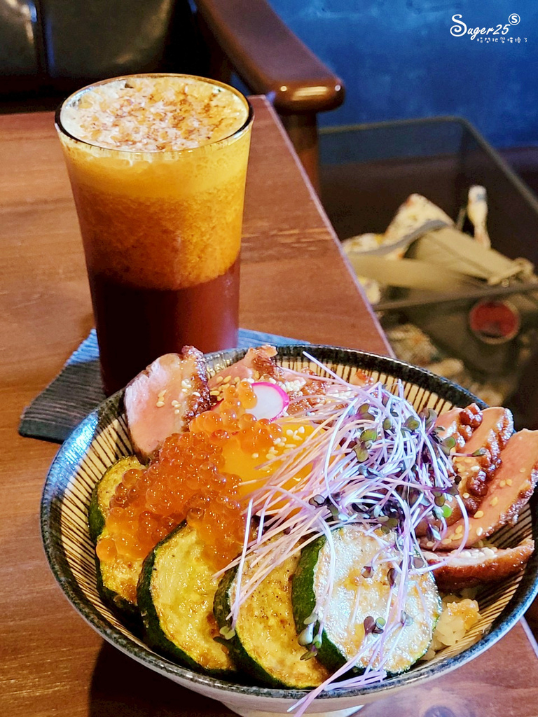 這碗超豐富的!上面有節瓜、鮭魚卵、宜蘭在地鴨胸、生菜